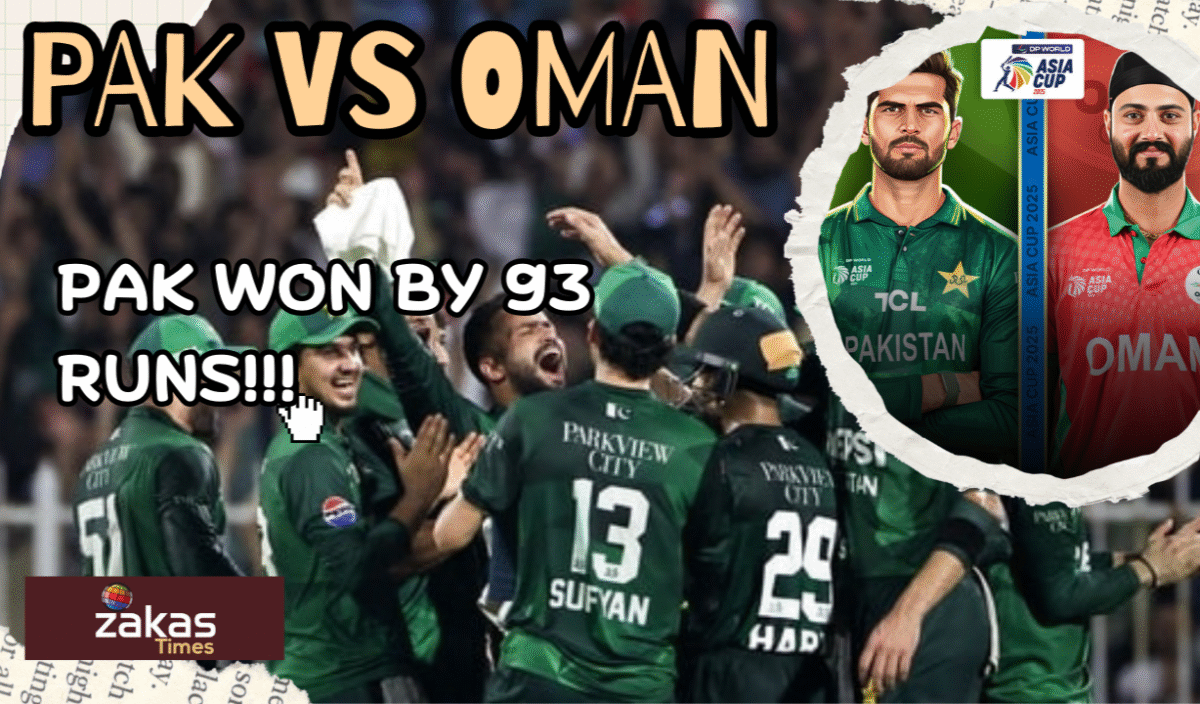 Asia cup – 2025,पाक नी स्पर्धेत ओमानवर दणदणीत विजयाची नोंद केली. दिनांक 12- सप्टेंबर रोजी खेळलेला पाकिस्तानचा ओमानवर ९३ धावांनी दमदार विजय झाला. पाकिस्तानने प्रथम फलंदाजी करताना 20 षटकांत 160/7 धावा केल्या. मोहम्मद हॅरिस यांनी सर्वाधिक 66 धावा (43 चेंडूत) केल्या. सैम अय्यूब आणि सलमान अली आगा यांनीही महत्त्वाच्या खेळी केल्या. नंतर oman फलंदाजी करत असताना 16.4 (overs ) मध्येय फक्त 67 धावा काढण्यात सक्षम राहिले.पाकिस्तानच्या भेदक गोलंदाजीपुढे ओमानचा संघ केवळ धावांमध्ये गुंडाळला गेला.